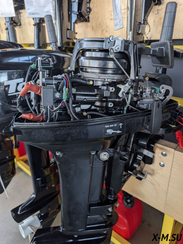 MP 40 AERTL: Лодочный мотор Marlin Outboards, двухтактный, 40 лошадиных сил, электрический запуск двигателя, дистанционное управление, гидропривод, длинная нога (дейдвуд).